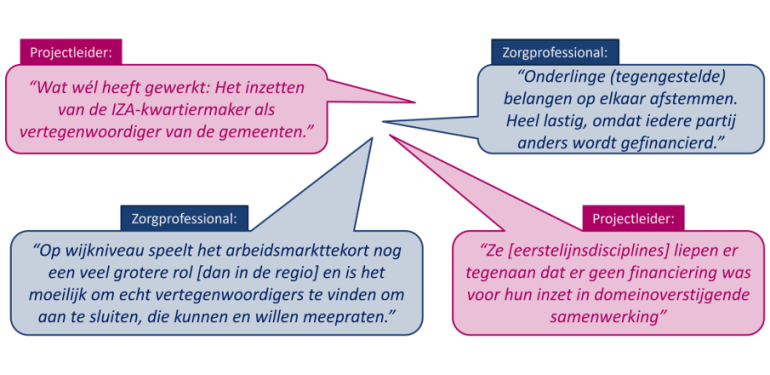 Projectleider: 'Ze (eerstelijnsdisciplines) liepen er tegenaan dat er geen financiering was voor hun inzet in domeinoverstijgende samenwerking.'
